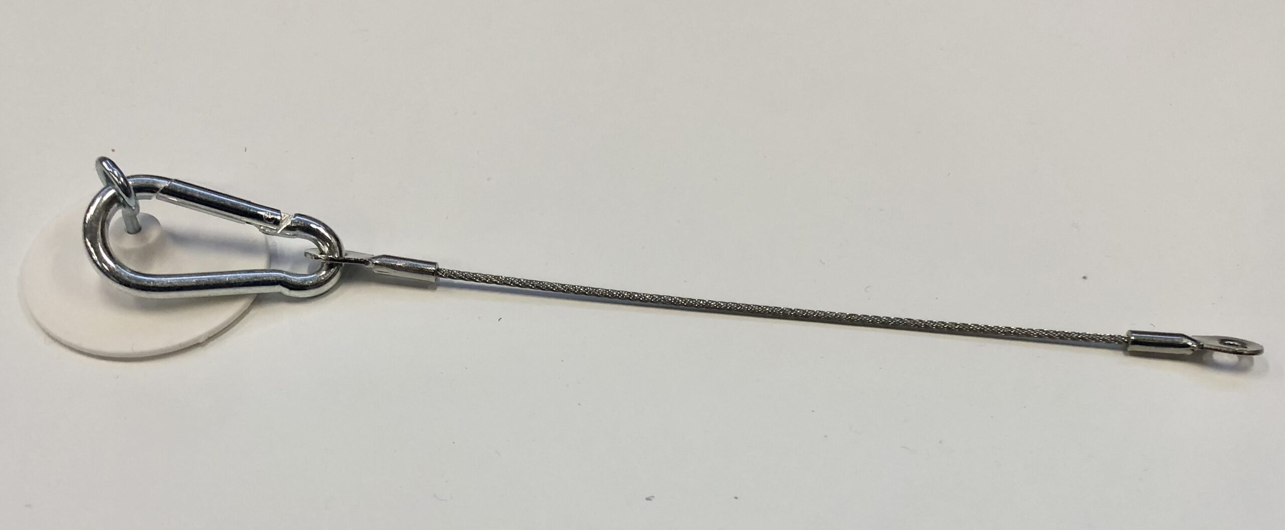 EASYMAG luukkujen turvavaijeripaketti. Turvavaijeripaketti sisältää; Turvavaijerin karbiini haalla, tarrakiinnikkeen, sekä poraruuvin.