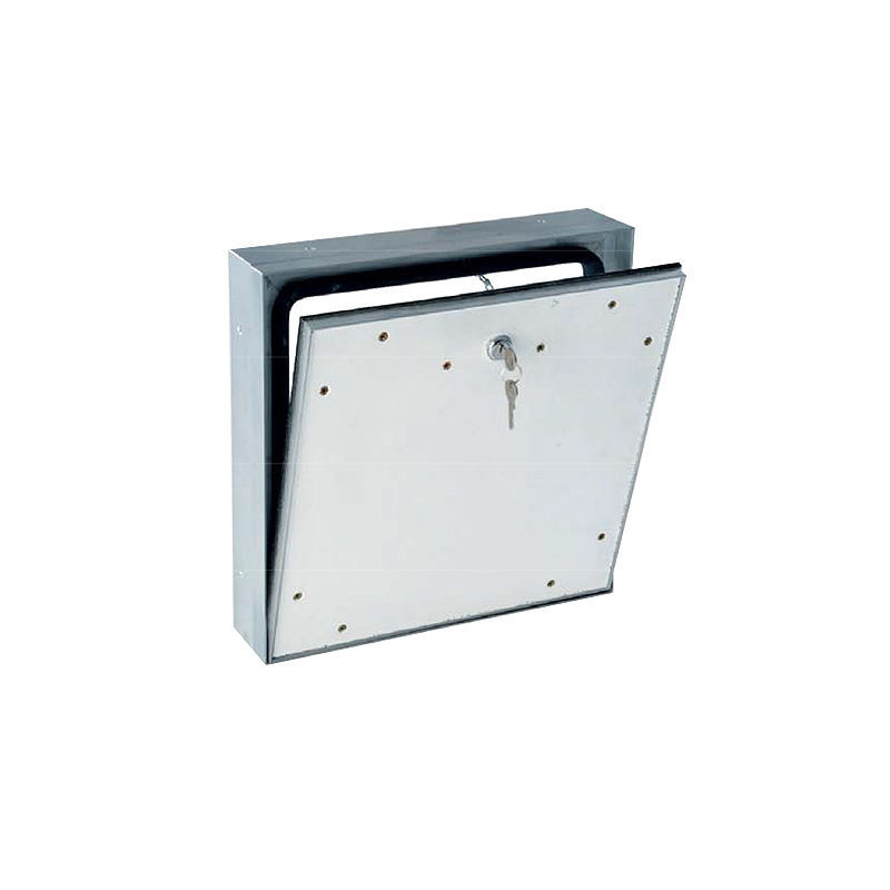 Huoltoluukku koostuu alumiiniprofiileista, betonilevystä ja pyöreästä sylinterilukosta avaimella. Sekä ulko- että sisärunko koostuu neljästä yksittäisestä osasta, jotka ovat kiinnitetty tukevasti toisiinsa erityisen hitsausmenetelmän ansiosta. Huoltoluukku on varustettu vahingossa tapahtuvan putoamisen estävällä turvaketjulla. Tapaturmien välttämiseksi tämä turvaketju on kiinnitettävä jokaisen avauskerran jälkeen. 3 mm liitosrako näkyy ulkokehyksen ja ovilehden välillä, ovilehti on varustettu innovatiivisella harjamaisella liitoksella, sekä tämän lisäksi erikoistiivisteliitoksella.
